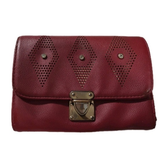 Vintage Red Leather Clutch Wallet Crossbody Bag Purse, Rhinestones