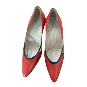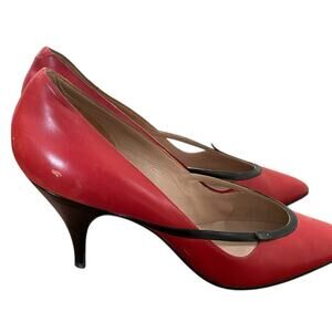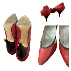 Vintage Red Leather Heels with Cutouts Pointed Toe Pumps Italy / 7.5 US -