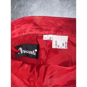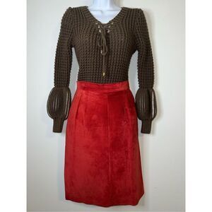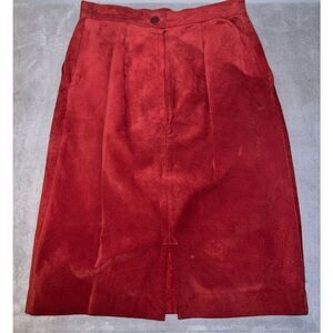 Vintage Red Leather Midi Skirt Women’s 12. 2 side pockets. Back zipper with tiny flaw at bottom of seam. See pics. Fully lined.