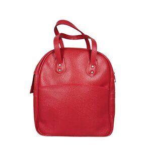 Vintage Red Leather Retro Bowling Bag Travel Carry On Dual Handle Zipper Closure