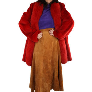 Stunning vintage reversible coat featuring vibrant red genuine leather on one side and a soft inner reverse. Finished with a luxurious real fox fur collar. A rare and elegant statement piece perfect for collectors and lovers of unique vintage outerwear.