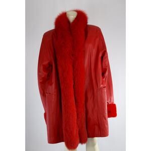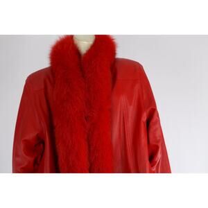 Vintage Red Leather Reversible Coat Fox Fur Collar Size M Luxury Retro Winter