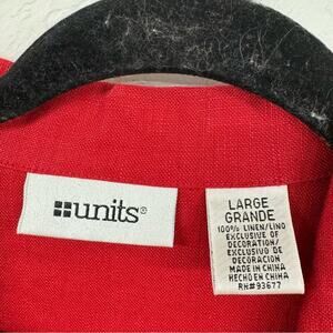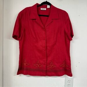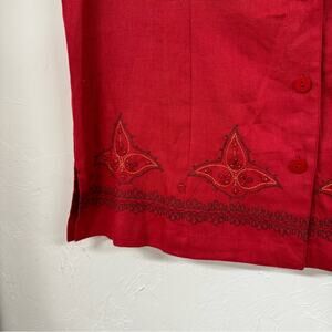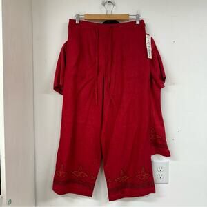 Vintage Red Linen Two Peice Set Wide Leg Pants Short Sleeve Button Down Shirt L