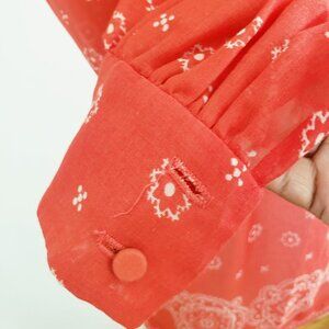 This one is quite a find. Reminds you of a red bandana. The collar is pointed and the buttons are covered by fabric.