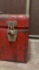 Sturdy red metal toolbox with a classic design. Features secure latches and a comfortable handle.