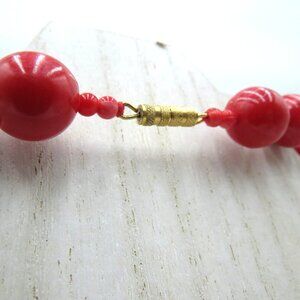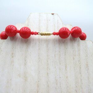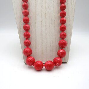 Vintage Red Marbled Bead Necklace Gold Tone Clasp Statement Chunky Jewelry 30"