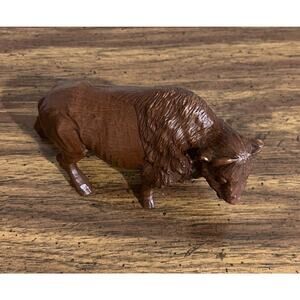 Vintage Red Mill Hand Carved Buffalo American Bison Pecan Wood Figurine 1999