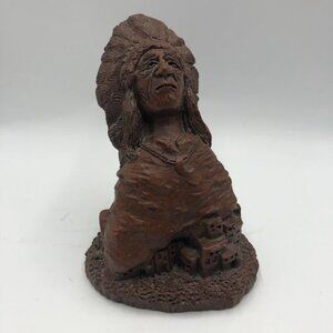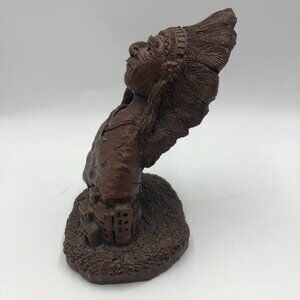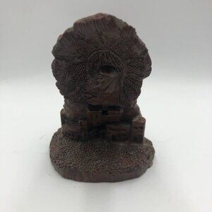 Vintage Red Mill Mfg Handcrafted Carved Indian Chief Figurine Native American. Figurine is vintage pre-owned. Please see all photos for visible condition. No original box. Believed to be from the 1990s era. Although looks like carved wood believed to be made out of some type of resin. Double sided. Brown. 4 felt pads on bottom. Approximately 6 inches x 4.5 inches x 4.5 inches. Tabletop collectible décor. May have dust in crevices.