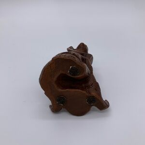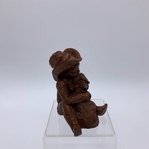 This product is a vintage Red Mill Western style figurine featuring a cowboy loving & cradling his dog. The figurine is made of peacan shell and resin, and has a hand-lacquer finish. It is a rare and retired piece, numbered CB 441, and is etched on the back bottom edge. The cowboy and his dog are depicted in a western style, wearing a western style costume with a cowboy hat & boots. The figurine has a textured surface with a smooth bottom equipped with felt for protection. It measures 5 inches in height, 4 inches in length, and 4 inches in width, and weighs 8.3 ounces and is in Excellent Vintage Pre-Owned Condition!