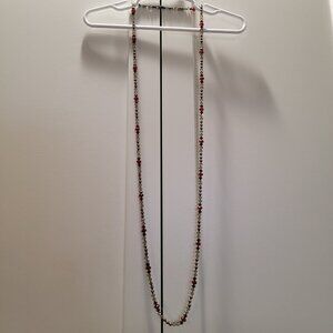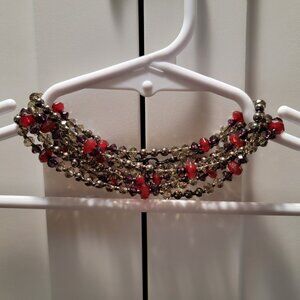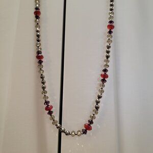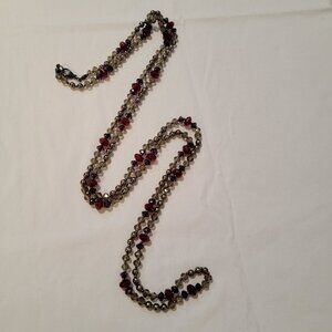 Vintage Red Necklace Gray Burgundy Beaded Crystal Cut Boho Chic 24, 12, 8 inches