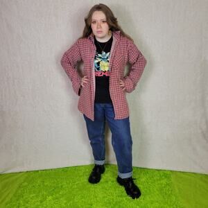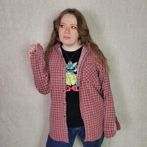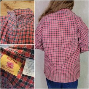 Vintage Red Oak Ranch Apparel Red Checkered Plaid Button Up Shirt, M Tall