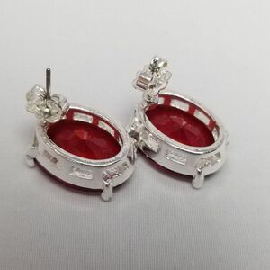 Vintage Red Oval Rhinestone Stud Earrings, Prong Set Silver Tone, Estate