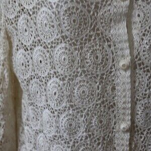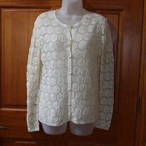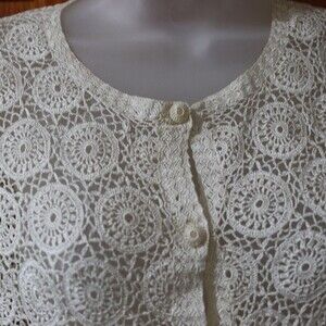 Vintage Red Peacock Hand Crochet White Lace Cardigan Cottage core Boho Top LG