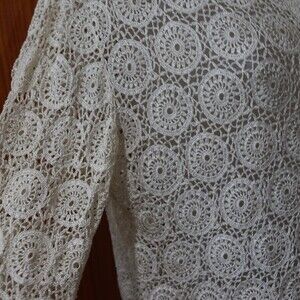 Vintage Red Peacock Hand Crochet White Lace Cardigan Cottage core Boho Top LG
