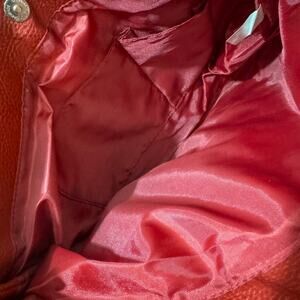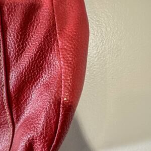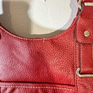 Make a bold statement with this vibrant red hobo shoulder bag. The exterior is made of soft, pebbled leather (likely genuine leather, but list as 'leather-like' if unsure) that gives it a beautiful slouchy, relaxed silhouette. The color is a classic, deep cherry red that makes for a perfect pop of color year-round.