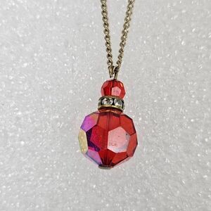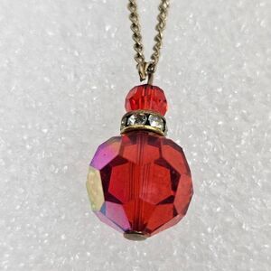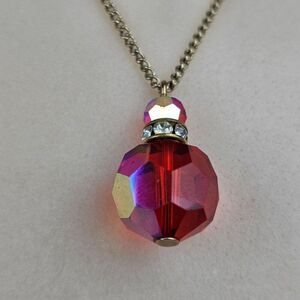 Vintage Red Pink Aurora Borealis AB Crystal Glass Bead Faceted Clear Rhinestone Rondelle Pendant Necklace