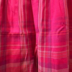 Vintage Red & Pink Plaid Pleated Midi Skirt