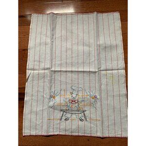 Vintage Red Pinstriped Hand Embroidered Chef cooking Hand Towel