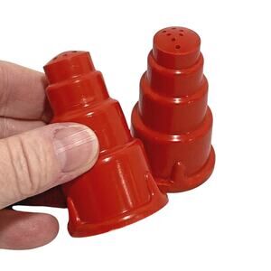 Vintage Red Plastic Salt & Pepper Shakers Set Atomic Age Rockets 1950's kitchen