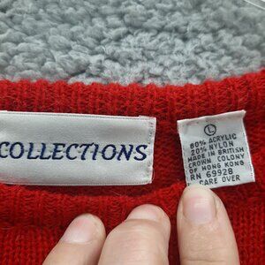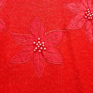 Vintage Red Poinsettia Flower Embellished Sweater Collections Long Sleeve
