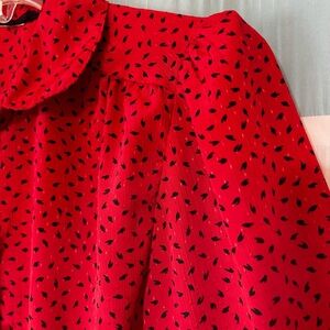 Vintage Red Polka Dot Peter Pan Collar Button Down Blouse Sz Medium