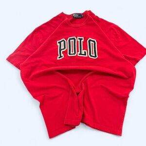 Vintage Red Polo Ralph Lauren Embroidered Spell Out T-shirt