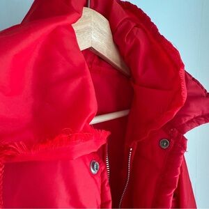 Vitnage Active Generation vest that have a very light weight windbreaker built in that can fold up and tuck int the pocket. Stylish red hooded puffer jacket with button closure. Perfect for staying warm and fashionable.