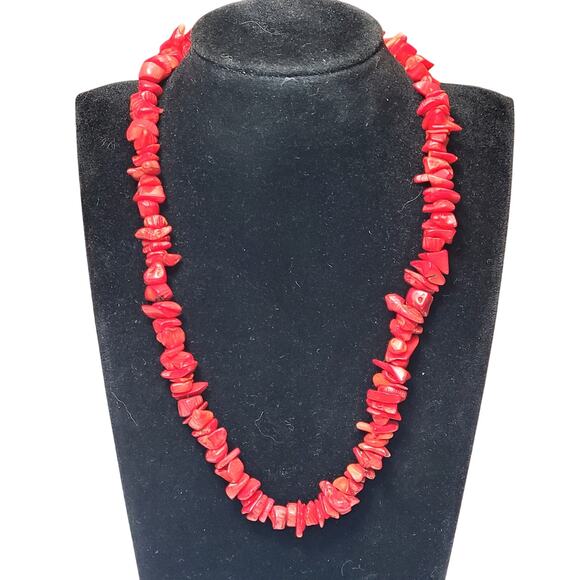 Vintage Red Puka Shell Chip Beaded Necklace Barrel Closure 16 inches Retro.