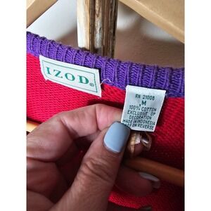 Vintage Izod red and purple button up cardigan with three patches to left side in ladies medium. This sweater has 5 original silver buttons and comprised of 100% cotton. It measures 22" pit to pit and 30" in length. No stains or fading. REMEMBER it pays to buy multiple items on Posh. Your initial item pays for shipping up to 5lbs. Make your purchase worth it!