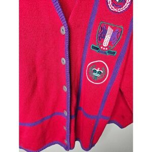 Vintage Red & Purple Button Up Cardigan with Patches Ladies size Medium