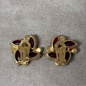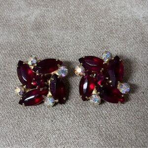 Vintage Red Rhinestone Clip On Earrings in excellent condition
