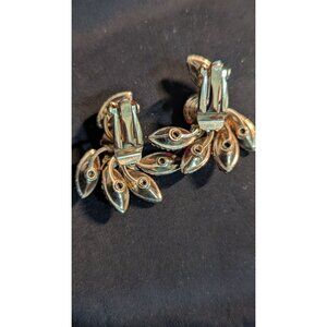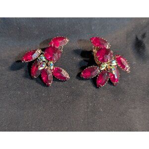 Vintage Red Rhinestone Clip-On Earrings Floral Shape Glam Jewelry estate