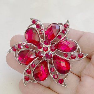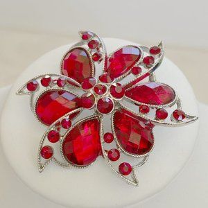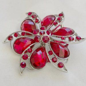 Vintage Red Rhinestone Pinwheel Flower Brooch (Wreath, Flower, Bow, Christmas)