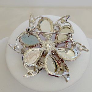 Condition: This brooch is in very good vintage condition. There are minimal signs of wear and use. All stones are present, and the stones and metal are shiny and sparkling. The clasp is in good working order. This piece is not signed.