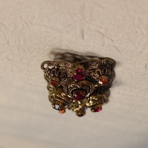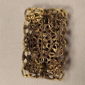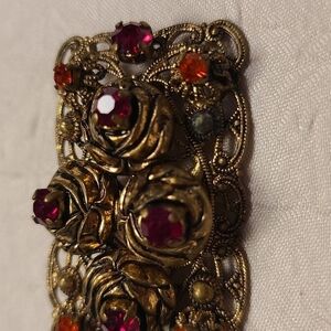 Vintage Red Roses Rectangular Brooch. 3 dimensional red roses wrapped in gold tone Pin.