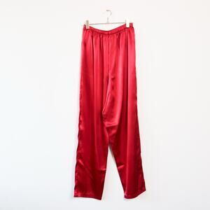 Vintage Red Satin Pull On Pants Straight Leg Small