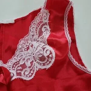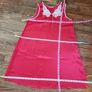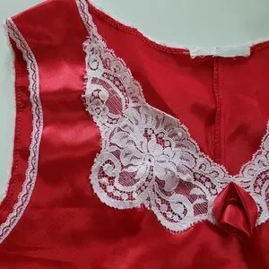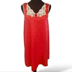 Vintage Red Satin Slip Dress Nightie Lace Rosette Beads Romantic Dark Coquette