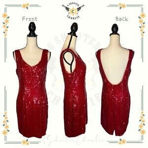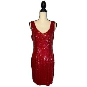 Vintage Red Sequin & Silk Sleeveless Dress Womens Size Medium Cocktail Party