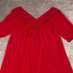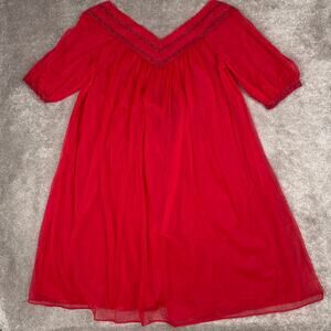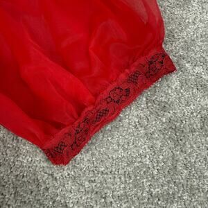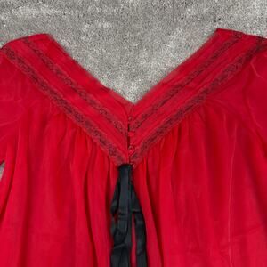 Vintage Red Sheer Chiffon Peignoir Nightgown Lingerie Black Trim Size 40 Small