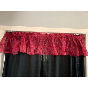 Vintage Red Sheer Ruffled Valance Curtains 84" x 12" Elegant Shiny Fabric Window