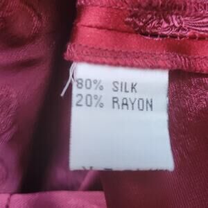 Features: silk/rayon blend, long sleeve, fold up cuffs, collared, cloth covered buttons, vanity sizing (says 2 but measures like a medium) see measurments