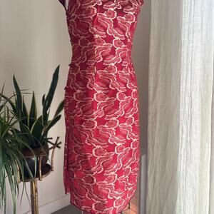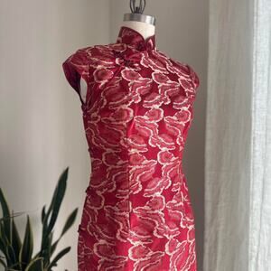 Vintage Red Silk Brocade Cheongsam Dress Asian Floral High Neck Size Medium/Large Estimated no tags