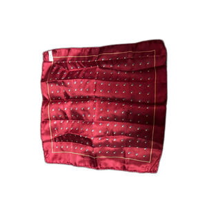 This elegant vintage handkerchief features a subtle floral pattern in blue and yellow on a rich red background. Crafted from luxurious silk, it adds a touch of sophistication to any suit or jacket. A timeless accessory for the discerning gentleman.
