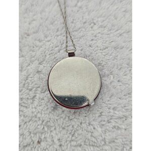 Vintage Red & Silver Abstract Pendant Necklace 16" Silver Tone Chain Retro