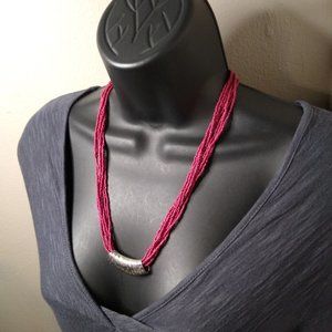 Vintage Red Small Bead Necklace Adjustable 19 To 22 Inches