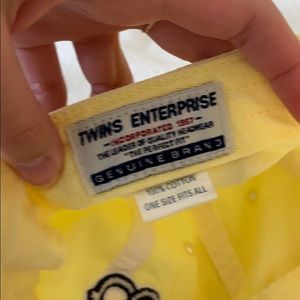 Cute yellow and dark blue/purple Red Sox hat, no fading of colors. Some discoloration around inside hat band, one scuff on rim, all pictured. Comes from smoke pet free home.