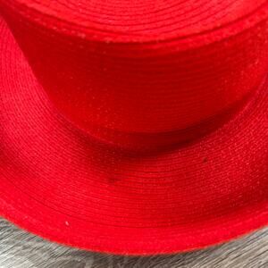 Vintage red structured boater-style hat. Features a flat crown, structured woven texture, and vibrant crimson red color. A striking piece that works beautifully as a statement accessory, costume piece, or collector’s item.