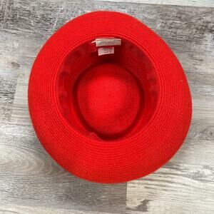 Vintage Red Structured Boater Hat Wide Brim Acrylic Statement Accessory Bold