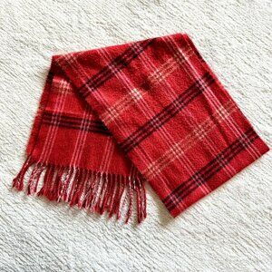 Vintage Red Tartan Plaid Wool Scarf