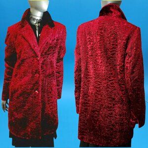 Vintage Red Velvet Textured Coat Jacket Mercedes New York Sz 14 USA Made Y2K